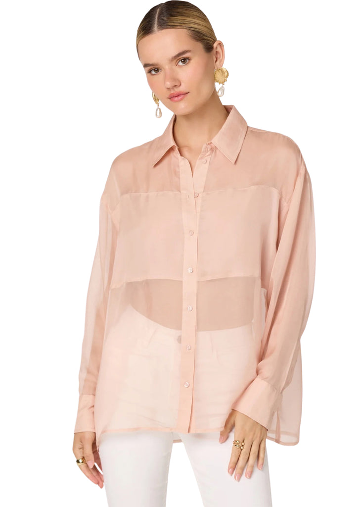 ASTR The Label Evie Shirt - Meet the sheer button up top that elevates your everyday lineup. With its airy fabric and clean structure, it’s an easy choice for workdays or polished off duty looks.