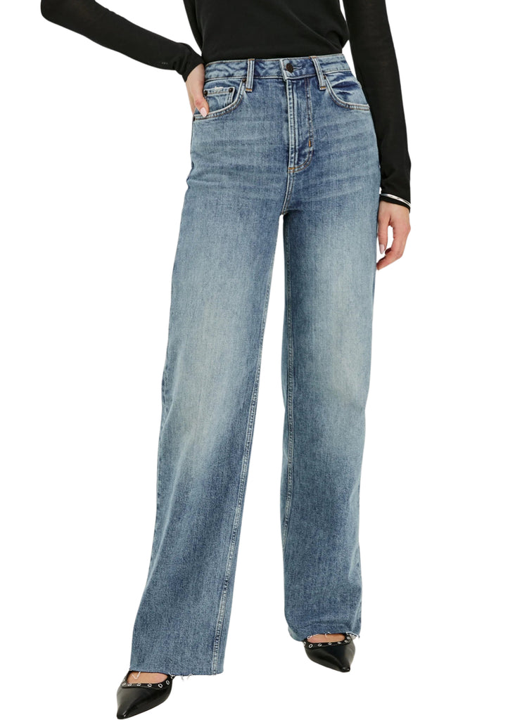 Modern fabric innovation meets heritage design in the Rails Getty Jean in Tradewind. This best-selling jean creates an hourglass silhouette with a high-rise, cinched waist and flared leg. Finished with an ultra-elongating 32-inch inseam, button-fly, and a little stretch for comfort.