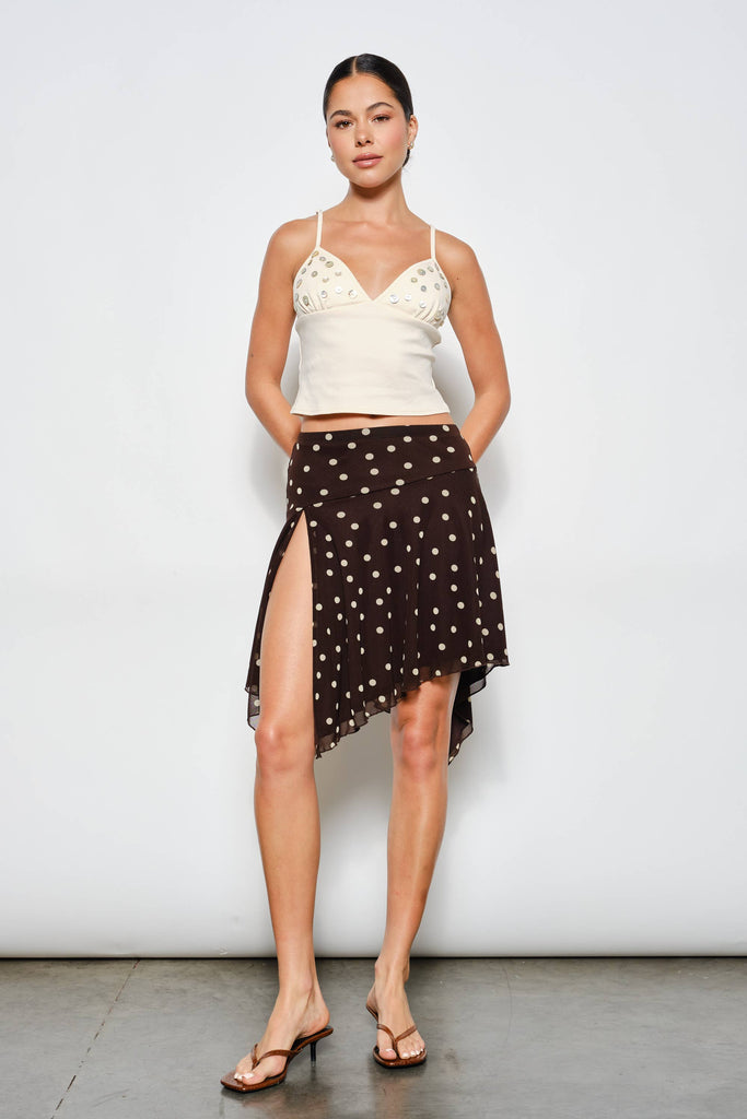 Float through your day in the Winnie Mesh Midi Skirt—a flirty favorite with just the right touch of texture. Designed in sheer mesh with a playful polka dot print, this midi skirt features an easy elasticized waistband and a chic side slit for subtle movement. Fully lined for comfy coverage, it’s made to keep you feeling cute and confident from day to night.