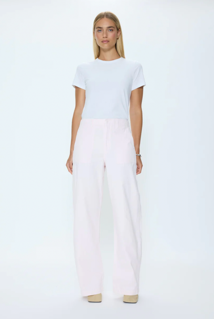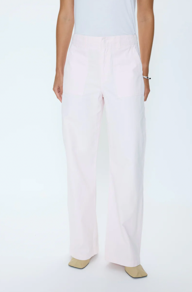The Pistola Wren Pant in Ice Pink is a laid-back interpretation of the straight leg, Wren sits effortlessly at the waist and falls into a relaxed, elongated shape. Made from rigid 100% cotton, its minimal detailing and easy silhouette pairs with everything from soft knits to crisp shirting. Ice Pink, a soft and cool-toned pastel, adds an unexpected twist to a classic denim staple.