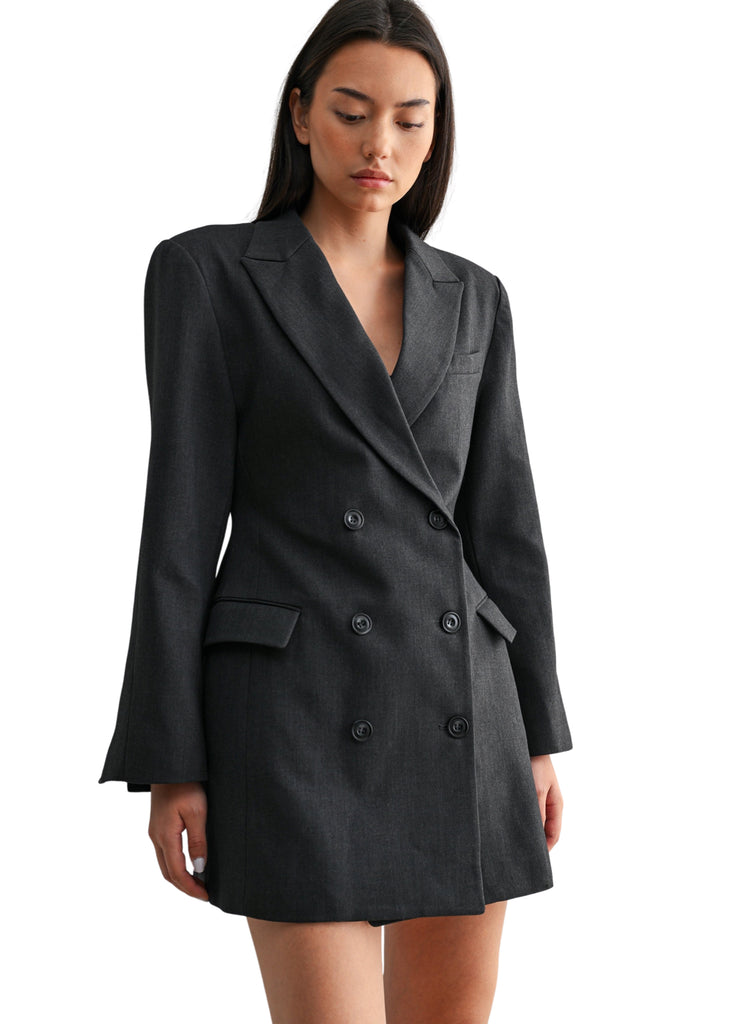 Bailey Blazer Mini Dress VIDA MOULIN $149.00 Small - $149.00 Medium - $149.00 Large - $149.00 left in this size! Quantity Please enter your email below and we will notify you if it becomes available. The Bailey Blazer Mini Dress features: Long Sleeve Double-breasted Mini length Sharp lapels Structured shoulders Front flap pockets Fitted waist detail Lining Please help our small business by reviewing our return policy and fees prior to purchasing.