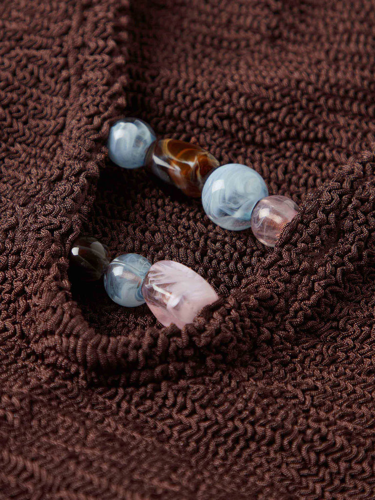 The Hunza G Adriana One Piece is designed with poolside glamour in mind. The flattering halterneck frames a deep plunge neckline, featuring our luxurious bead details. A low cut back and classic leg coverage keep it perfectly balanced and totally effortless.
