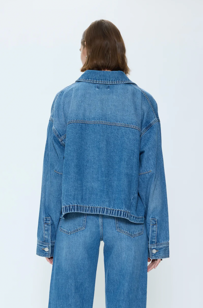The Pistola Bibi Jacket reimagines the classic denim jacket with a softly structured, blouson silhouette. Cut from 100% cotton non-stretch denim, it holds its shape while offering a relaxed drape and subtle volume that makes a statement. Designed with dropped shoulders, clean seaming, and a slightly cropped length, the Bibi’s balanced proportions offer easy styling.