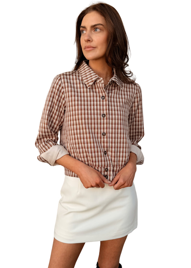The ASTR The Label Jesse Jacket features a cozy plaid in warm earth tones defines this cropped jacket with a collared neckline. The button front and relaxed fit make it an easy layering piece for transitional weather.