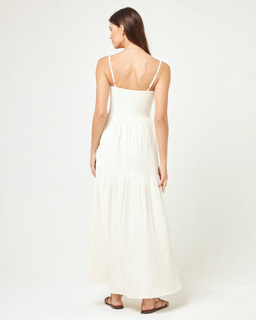 You're going to look smokin' hot in this smocked bodice masterpiece. The Mallorca Dress is a maxi that really is doing the most. Thin spaghetti straps and a one-tier skirt let this one move with you.