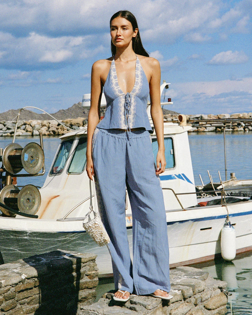 Made for movement and seaside adventures, the L*Space Sur Pants feature an easy pull-on fit with a comfy elastic waistband and breezy wide legs. Contrast stitching adds a fun pop along the side seams, while handy pockets are perfect for collecting treasures. Finished with a playful seashell print running down the sides, these pants bring major beach-day energy wherever they go.