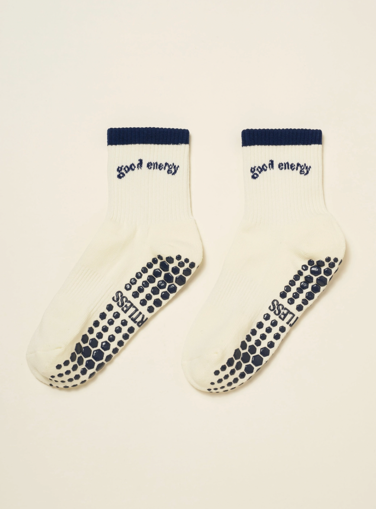 These Pilates Socks - Good Energy are made from scratch in the USA, they are the cutest and most comfortable socks for your Pilates & everyday outfits. The perfect blend of energy and positivity for your workouts for in the summer vibes.