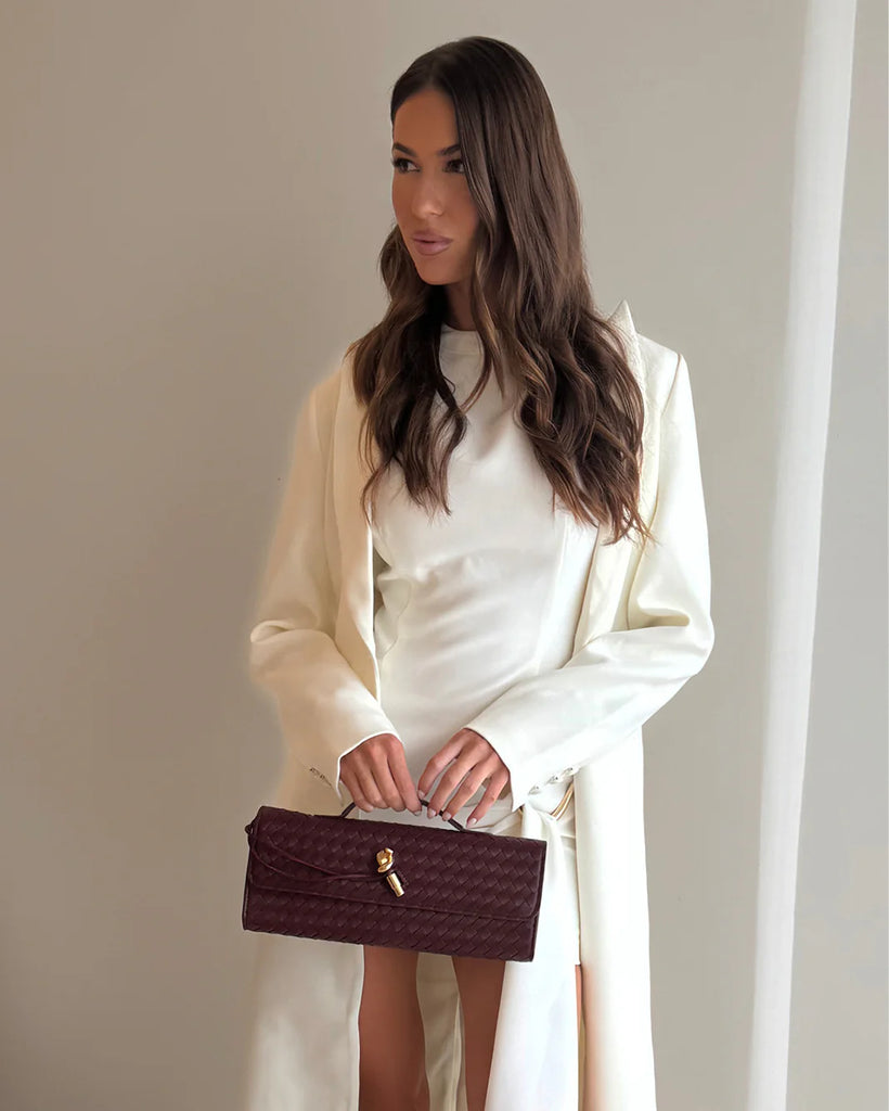 This woven bag is an essential statement accessory to effortlessly elevate any look.