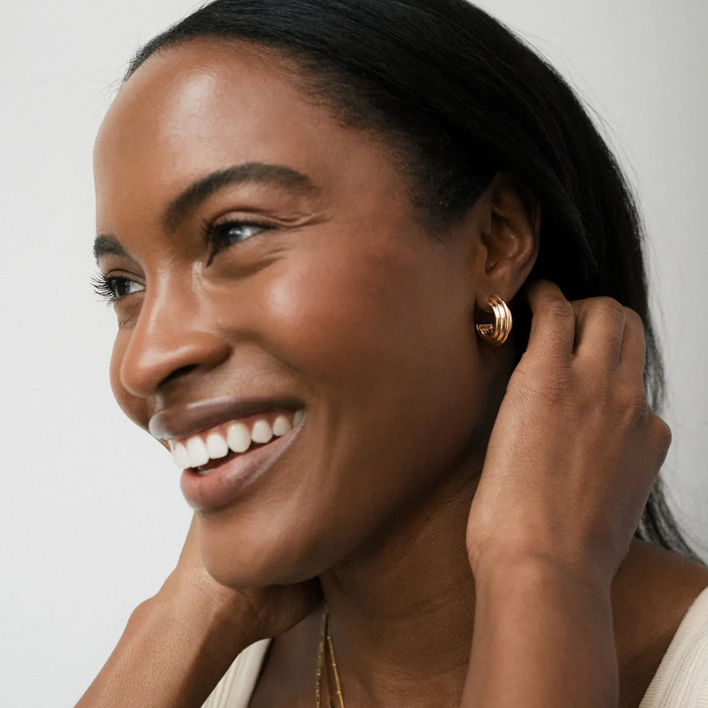 Featuring a sharp, geometric design with a unique textured surface, the Mod + Jo Whitney Hoops combine bold structure with subtle detailing for a look that's both edgy and sophisticated.