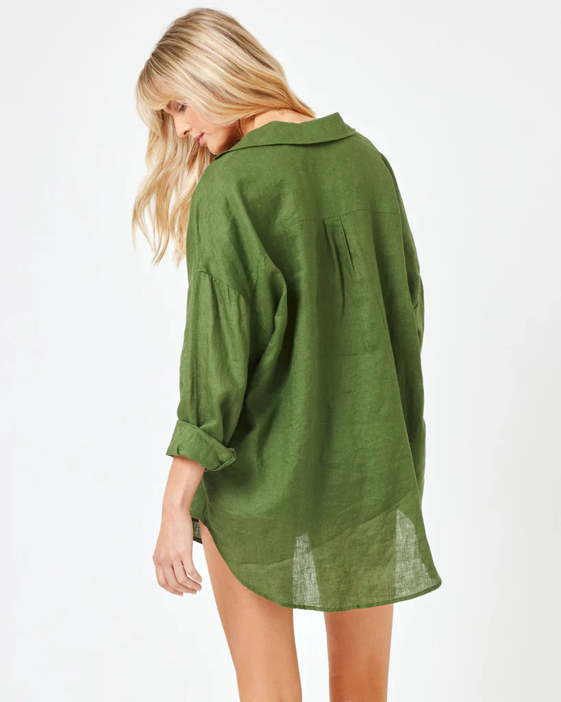 Tailored, refined details pair up with an oversize silhouette to make your new favorite shirt. The L*Space Rio Tunic - Jungle is an essential part of any capsule wardrobe.